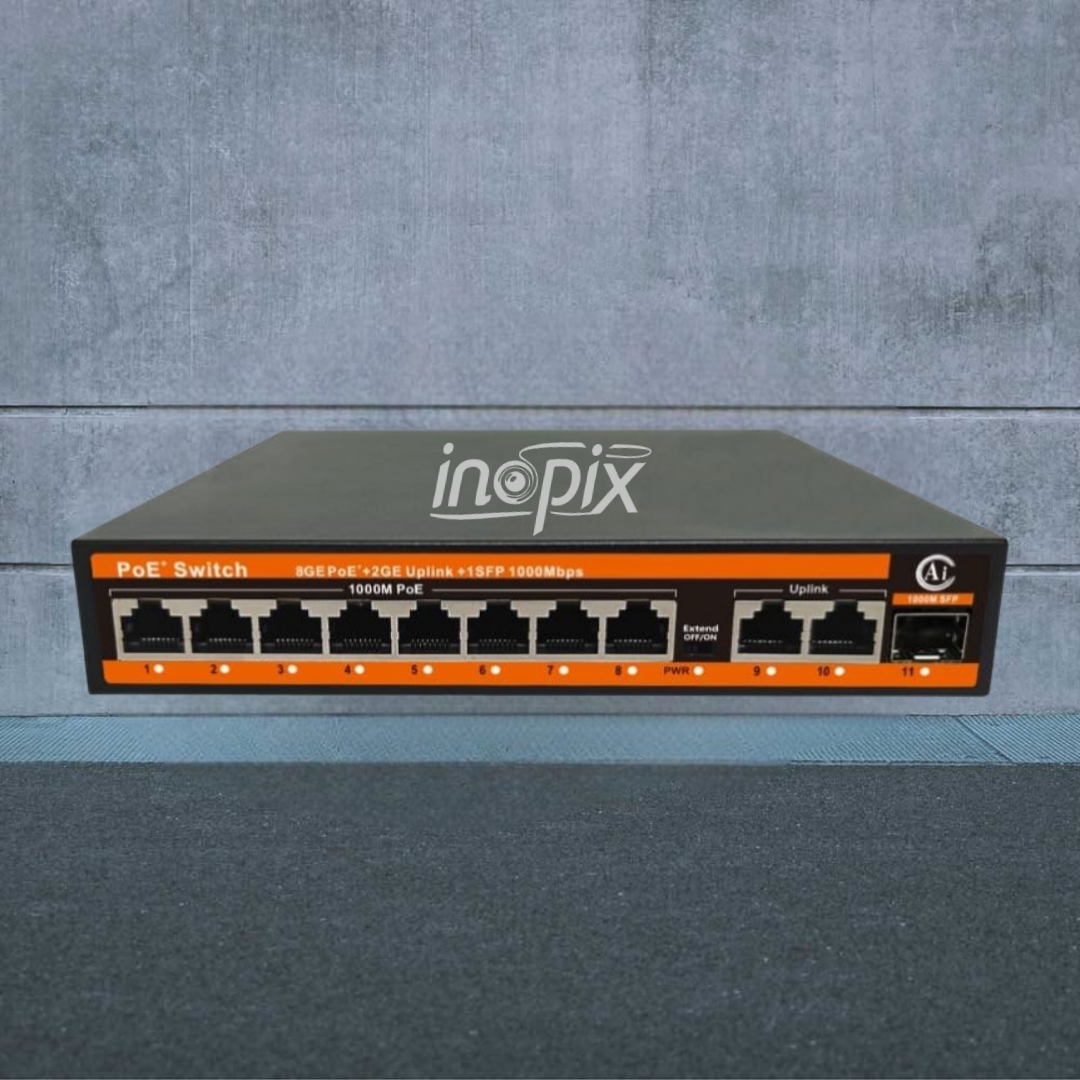 The INOPIX 8+2 Giga Port PoE Switch with 2 Uplink Ports is a networking device designed to provide Power over Ethernet (PoE) capabilities. Here’s a breakdown of its features: